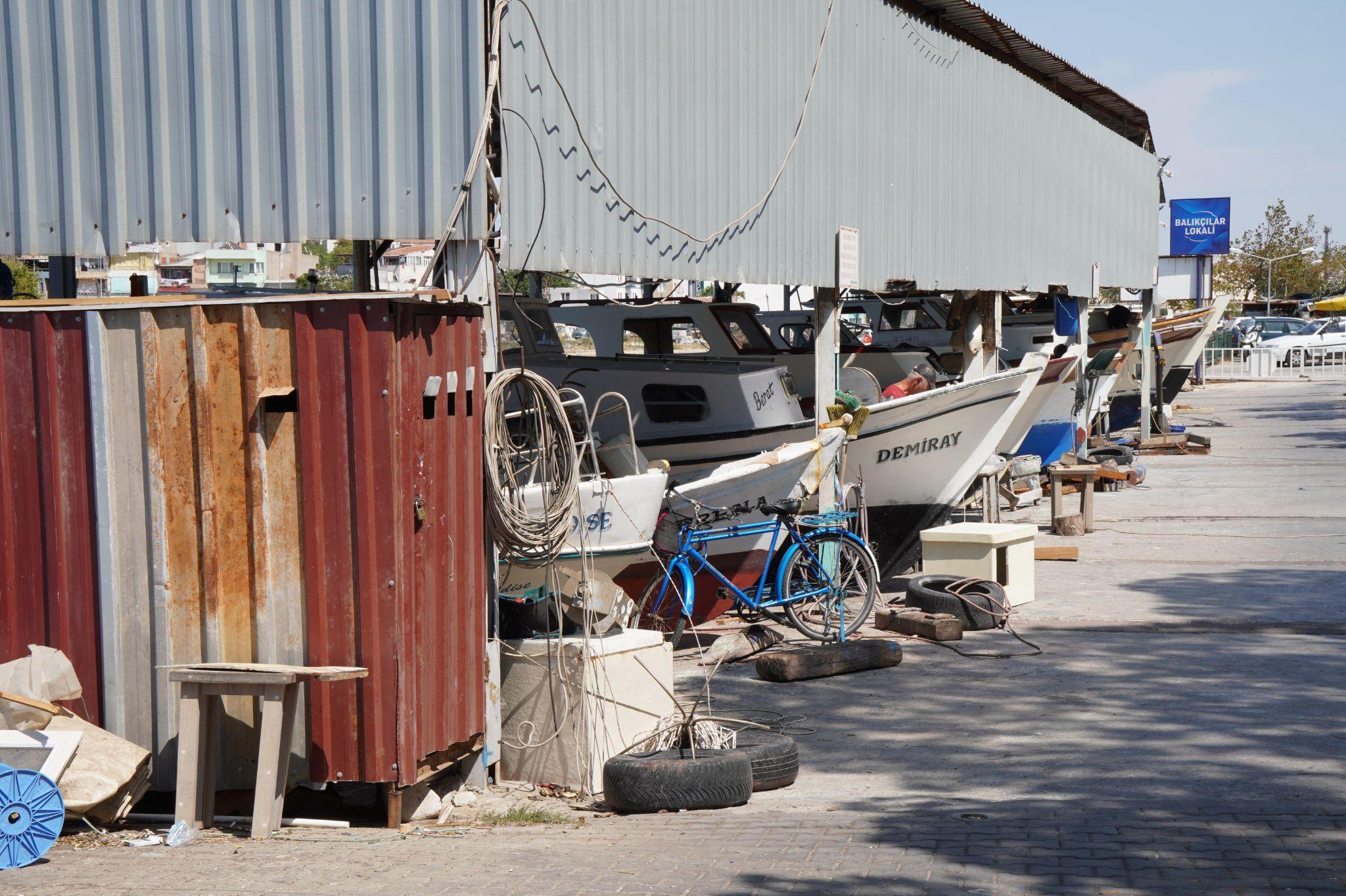 Çanakkale ziyaretimizde son durağımız da Sarıçay’ın boğaza açıldığı noktadaki balıkçı barınağına olacak. Küçük ölçekli avcılık yapan balıkçılar, yakında başlayacak (ağustos ayının sonunda Çanakkale’deydik) av sezonu için boya, onarım gibi hazırlıklarını yapıyorlar.