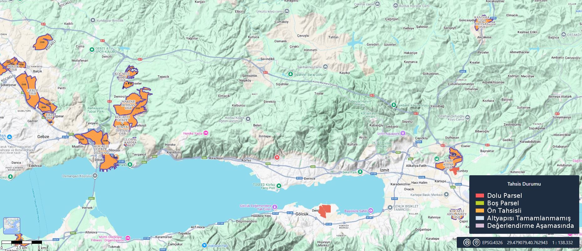 Kentte 14 OGS, iki serbest bölge, Bilişim Vadisi dahil beş teknopark, 30 Ar-Ge merkezi, 18 tasarım Merkezi, 12 küçük sanayi sitesi bulunuyor. Körfez çevresinde 2000’den fazla imalatçı firma da üretim yapıyor, bunların yarıdan fazlası ise Gebze ve Dilovası’nda.