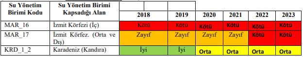 Buna rağmen besin elementleri; toplam fosfor, nitrat+nitrit, seki disk derinliği değerlendirmesine göre denizin ve kıyıların durumu “kırmızı”, bakanlık jargonuyla “kötü”: