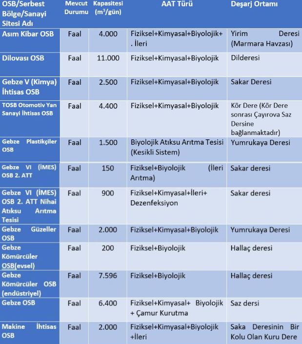 Kocaeli Su ve Kanalizasyon Genel Müdürlüğü’nün (İSU) verilerine göre, ileri biyolojik arıtma tesisi sayısı bu yıl 21’e çıkarılmış. Biyolojik prosese sahip Körfez ve Yeniköy Atıksu Arıtma tesislerinin de ileri biyolojik atıksu arıtma tesisine dönüştürülmesi için ihale süreçleri tamamlanmış ve inşası devam ediyor. Ancak bunların ağırlıklı olarak evsel atık su olduğunu unutmamak lazım.