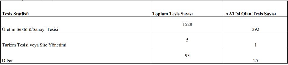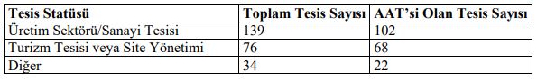 Münferit sanayiye ait atıksu arıtma tesisi sayısı da şöyle:
