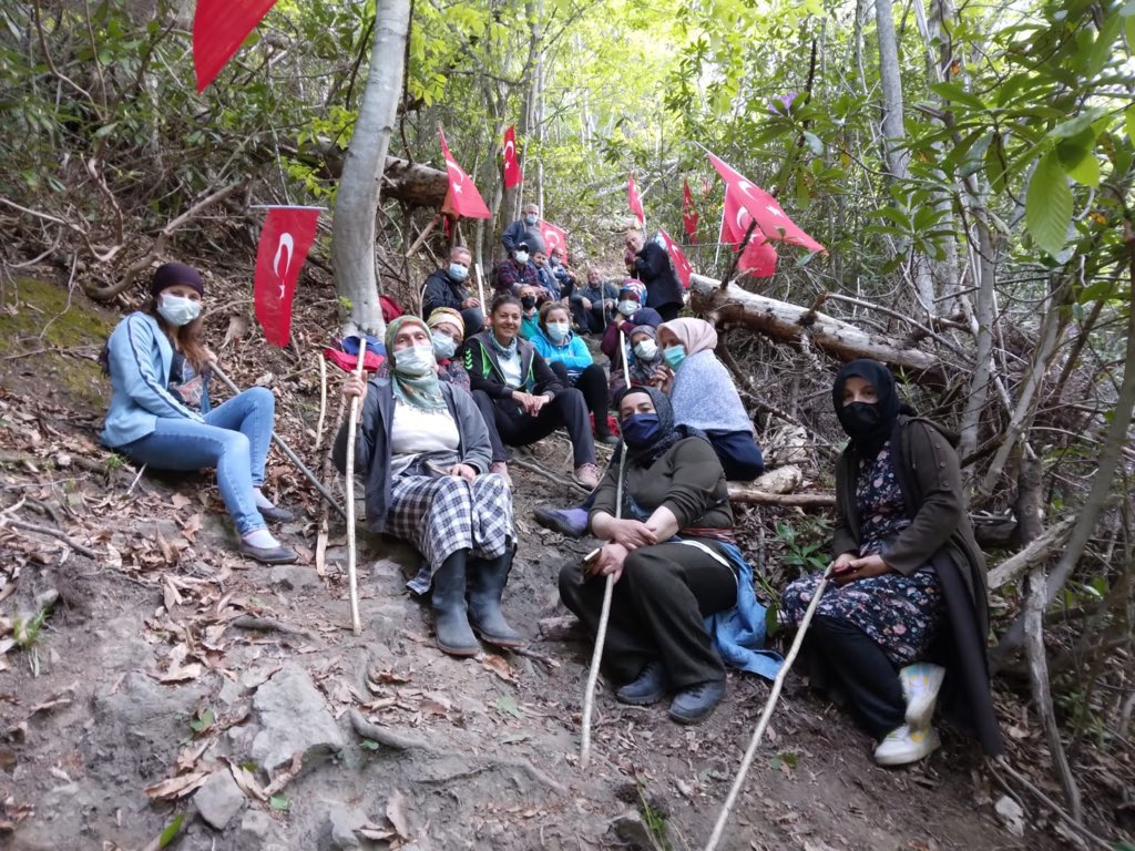 Rize’de İşkencedere Vadisi’nde çalışan iş makinelerine engel olmak isteyen köylüler, sabahın erken saatlerinde alana gitti. Jandarma yolları kapattığı için çalışma yapılan bölgeye ancak ormanın içinden geçerek varabilen köylüler, iş makinesinin önünde bulunan ağaçlara Türk bayrağı asarak direnişe geçti.